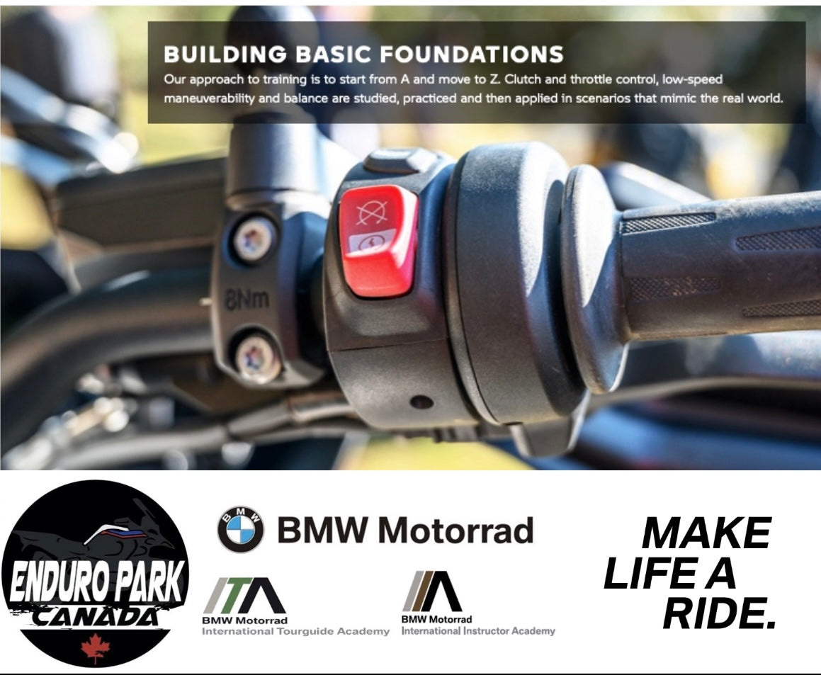 Enduro Park Canada's introductory course is based on BMW's proven Off-Road Training program and focuses on the core techniques that are vital for newer riders and anyone looking to improve their skills. Through hands-on practice on flat ground, you'll learn the fundamentals of off-road riding, setting the stage for further progression into more challenging courses like our Level 1 training.